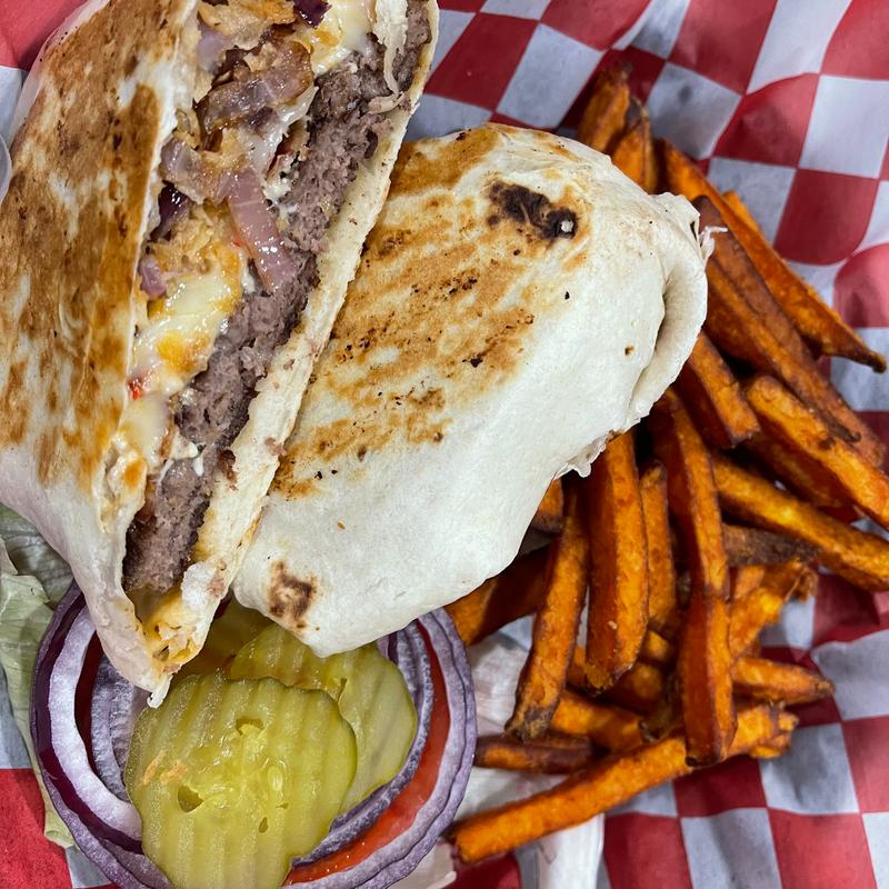 Ask to have your choice of burger in a wrap